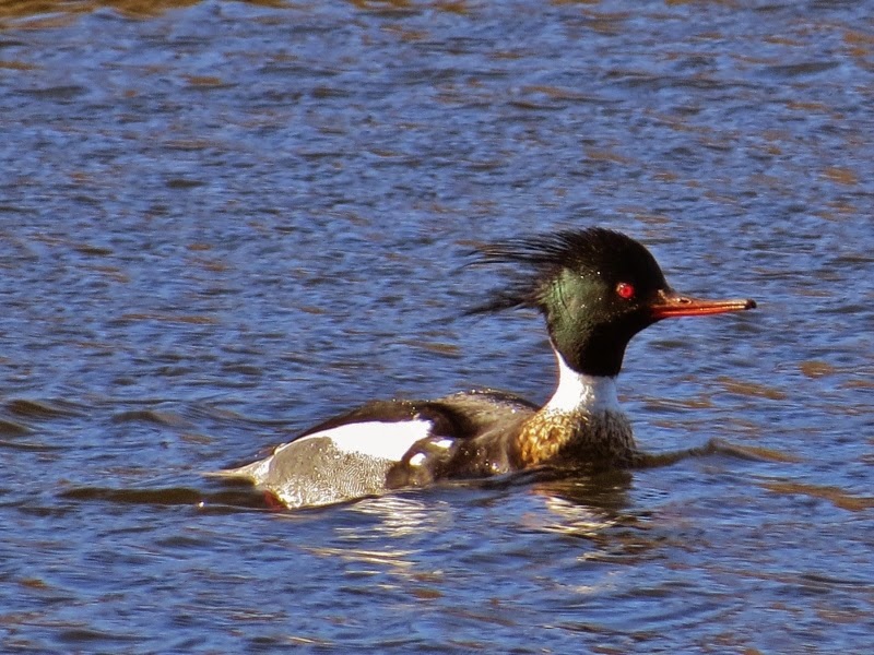 Just because a location is has a fancy title like National Wildlife Refuge does not guarantee that it's going to be loaded with birds but I had a fairly productive morning of birding. Some of my highlights included seeing Willets, Greater Yellowlegs, Red-breasted Merganser (above), nesting Osprey, a Little Blue Heron, and a mix of woodland birds.I took a seat for a while and was able to watch the merganser dunking and diving for food from a fairly close distance.